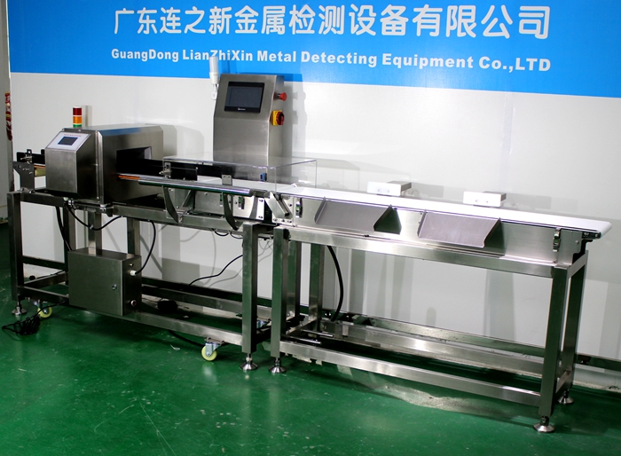 金屬檢測和重量檢測一體機(jī),主要用于小包裝干貨等按重量大小分選規(guī)格或等級,適用于企業(yè)流水線產(chǎn)品生產(chǎn)動(dòng)態(tài)稱重、產(chǎn)品品質(zhì)重量檢測及金屬異物檢測,專用于產(chǎn)品整箱缺件、附件缺失以及金屬殘留金屬異物檢查等等,配備自動(dòng)剔除不合格處理分選設(shè)備,前段為金屬超標(biāo)剔除,后段剔除為重量檢測不合格剔除。