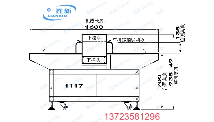 說明:檢針機(jī)靈敏度的高低由檢測高度(即通道或龍門)來決定最高檢測精度。龍門越高,靈敏度就相應(yīng)降低。以上對應(yīng)的高度和檢測標(biāo)準(zhǔn)是在空機(jī)狀態(tài)下的檢測結(jié)果;檢測通道高度和寬度,都可以按要求定做!