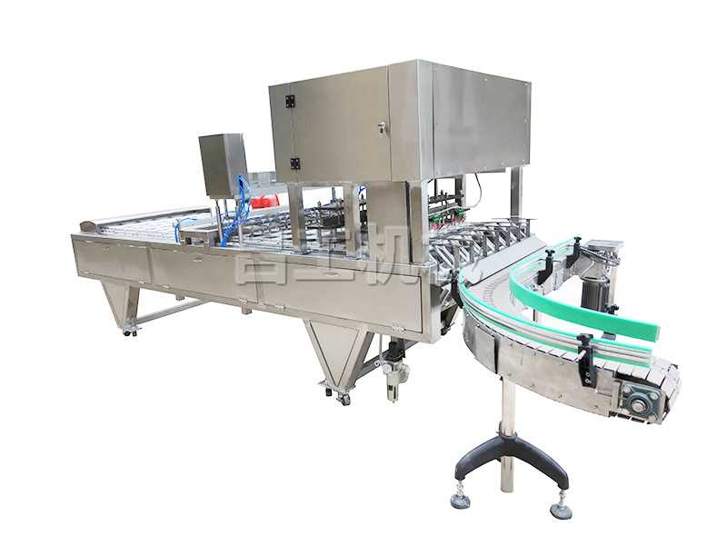 4、灌裝系統:儲料缸為不銹鋼304材質,氣缸行程工作活塞式定量灌裝、非接觸式灌裝、灌裝量可自由調節、定量準確,帶有液位控制裝置。