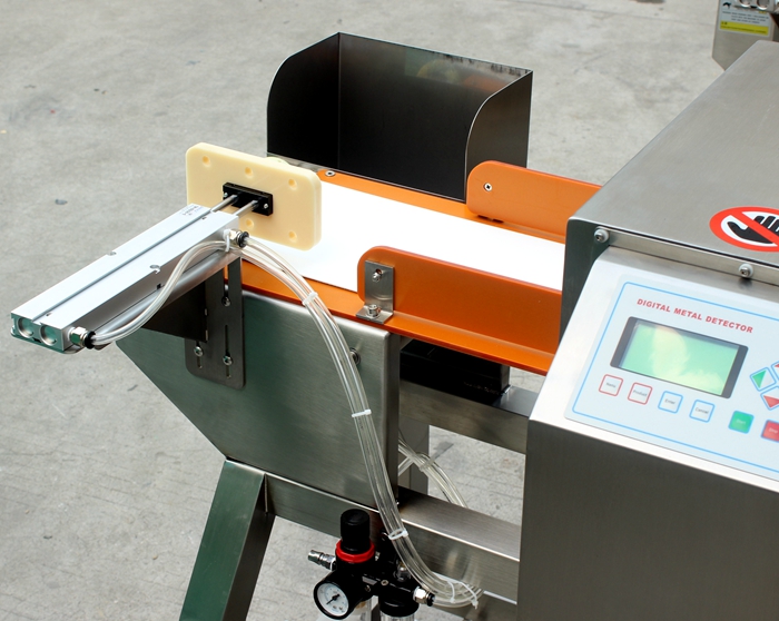 小包裝食品推桿式金屬檢測(cè)機(jī),含有金屬異物的產(chǎn)品經(jīng)過探頭時(shí)會(huì)被發(fā)現(xiàn)并自動(dòng)推掉。適合配套小包裝食品流水線生產(chǎn)使用。