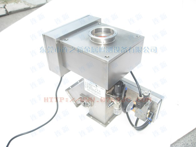 原料從料斗或送料器自由下落進(jìn)入金屬分離器,如果沒有金屬雜質(zhì),原料會(huì)直接通過金屬分離器流向下端的出料口。如果檢測(cè)器檢測(cè)到原料中含有金屬,那么控制器立刻啟動(dòng)分離板將金屬物和部分原料一起導(dǎo)向側(cè)面的排料口,然后分流板迅速恢復(fù)至正常的位置,分流板速度可調(diào),金屬分離器的檢測(cè)精度也可根據(jù)生產(chǎn)需要調(diào)節(jié),最小可檢測(cè)并分離出Φ 0.2mm的金屬顆粒。